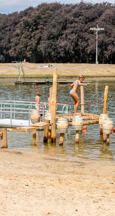 Auf dem Freizeit- und Naturgelände Het Hulsbeek: Sandstrände, Badesee, Abenteuerspielwald, Kart- und Quadbahn, Reitstall, Pannafeld, Wasserspielplatz, Kletterpark und vieles mehr